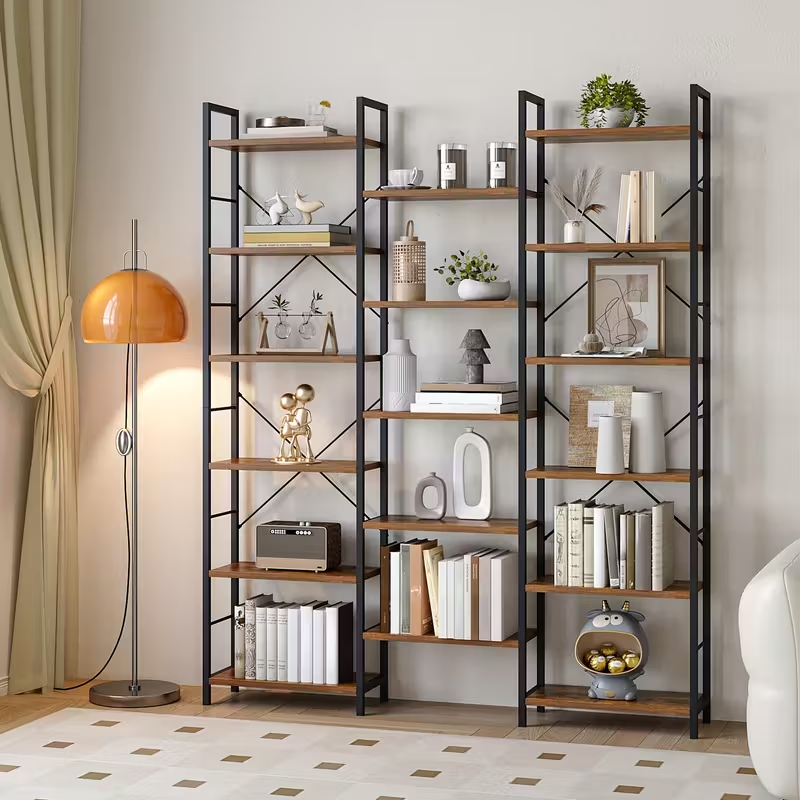 Shelvique shelves suit living rooms, bedrooms, home offices, and work areas. Their tall construction and evenly spaced tiers create convenient vertical storage. Wood and metal elements pair well with warm interiors and light walls. The overall design forms a calm and tidy appearance in different spaces.