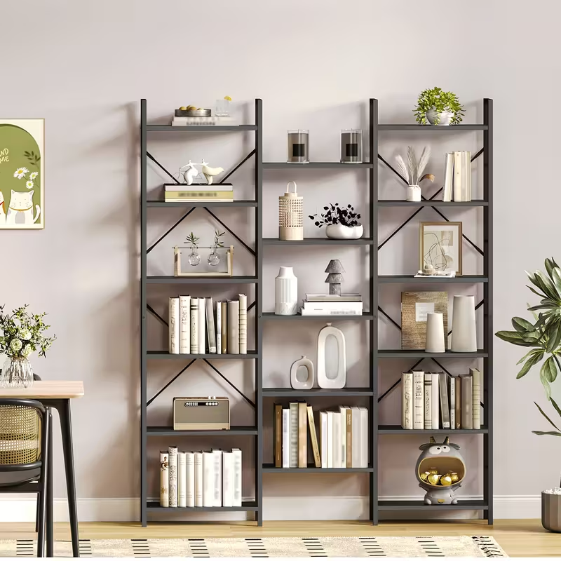 Each tier supports significant weight and accommodates books of various formats. The vertical design allows the creation of large book walls in a compact footprint. Books, boxes, and decor items can be arranged evenly, forming a clean visual layout. This makes the shelves practical for everyday use.